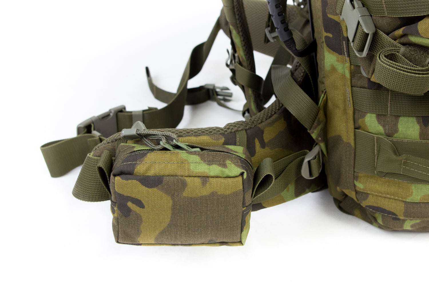 Kapsa se upevňuje pomocí popruhů, které jsou našity na zadní straně a jsou přizpůsobeny k upnutí na MOLLE vazbu.