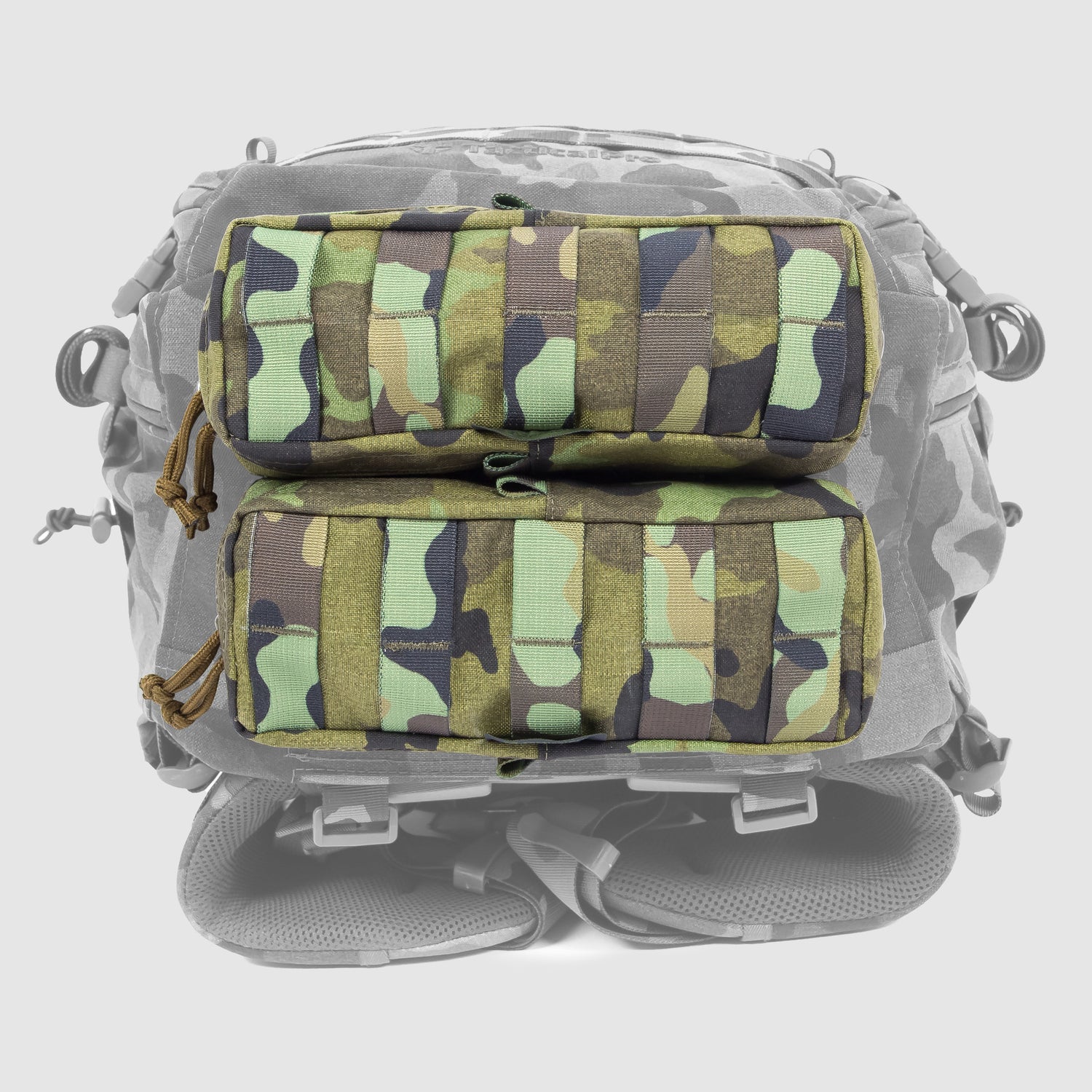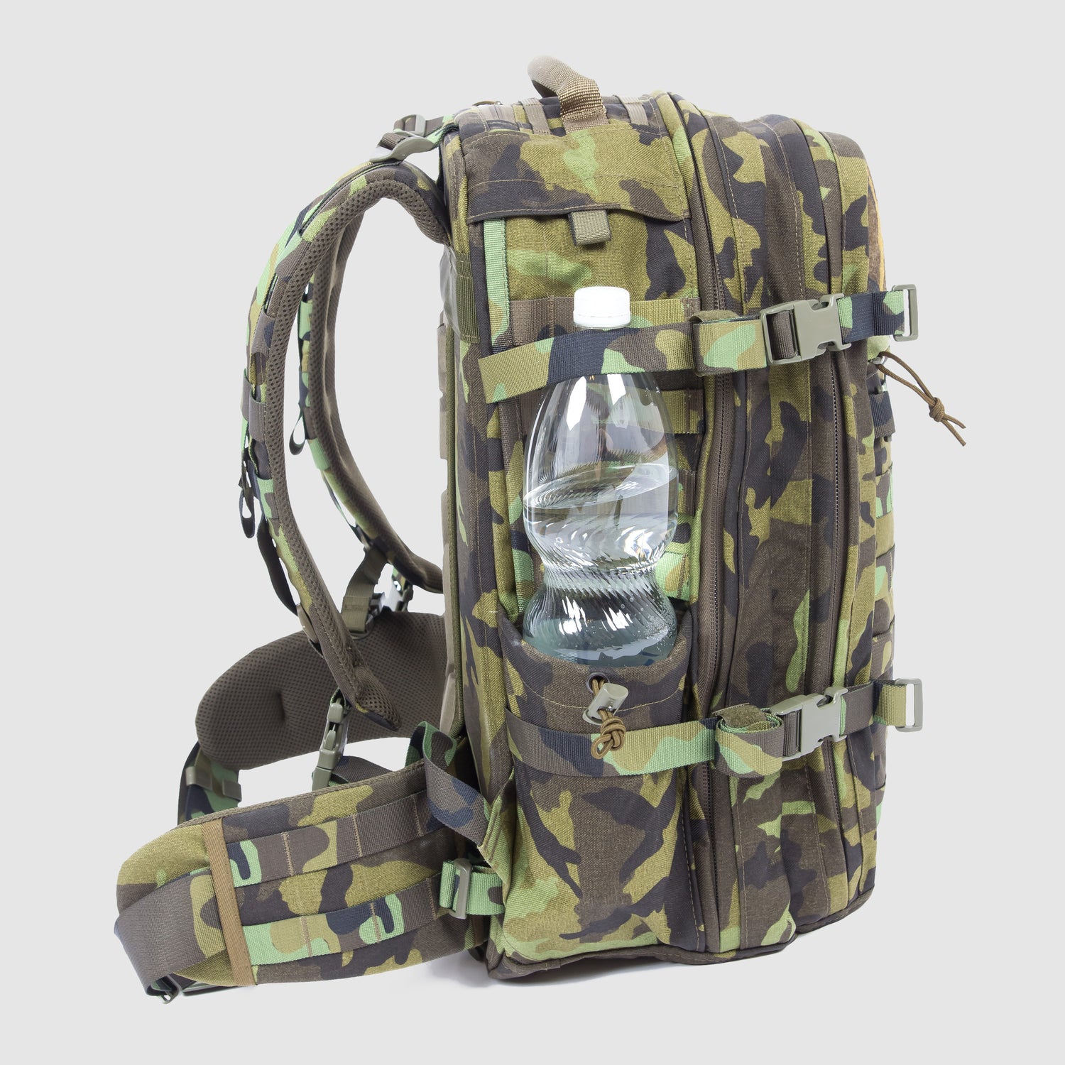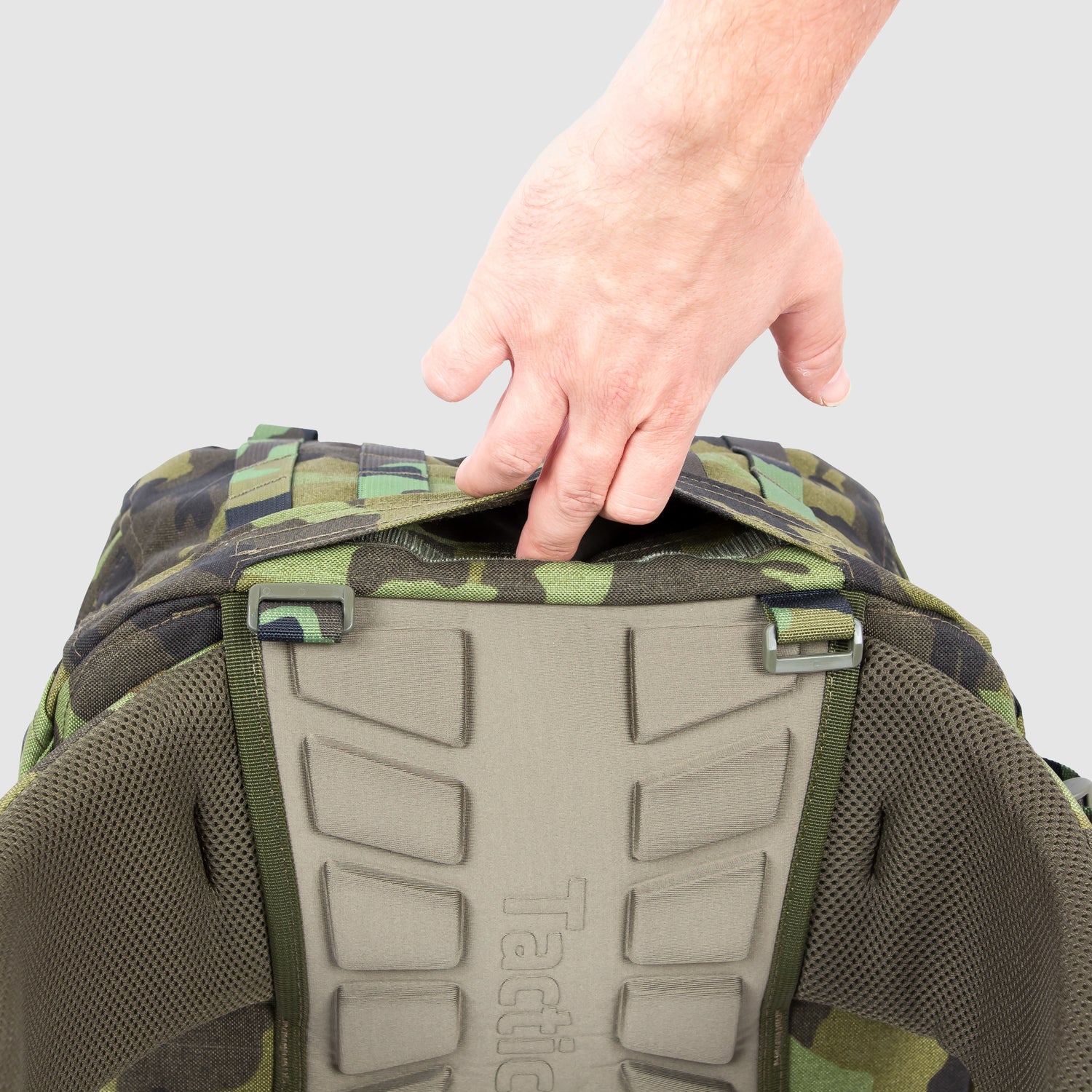 • Kompletní MOLLE vazba po celém povrchu batohu — absolutní modularita a možnost připevnit další sumky.