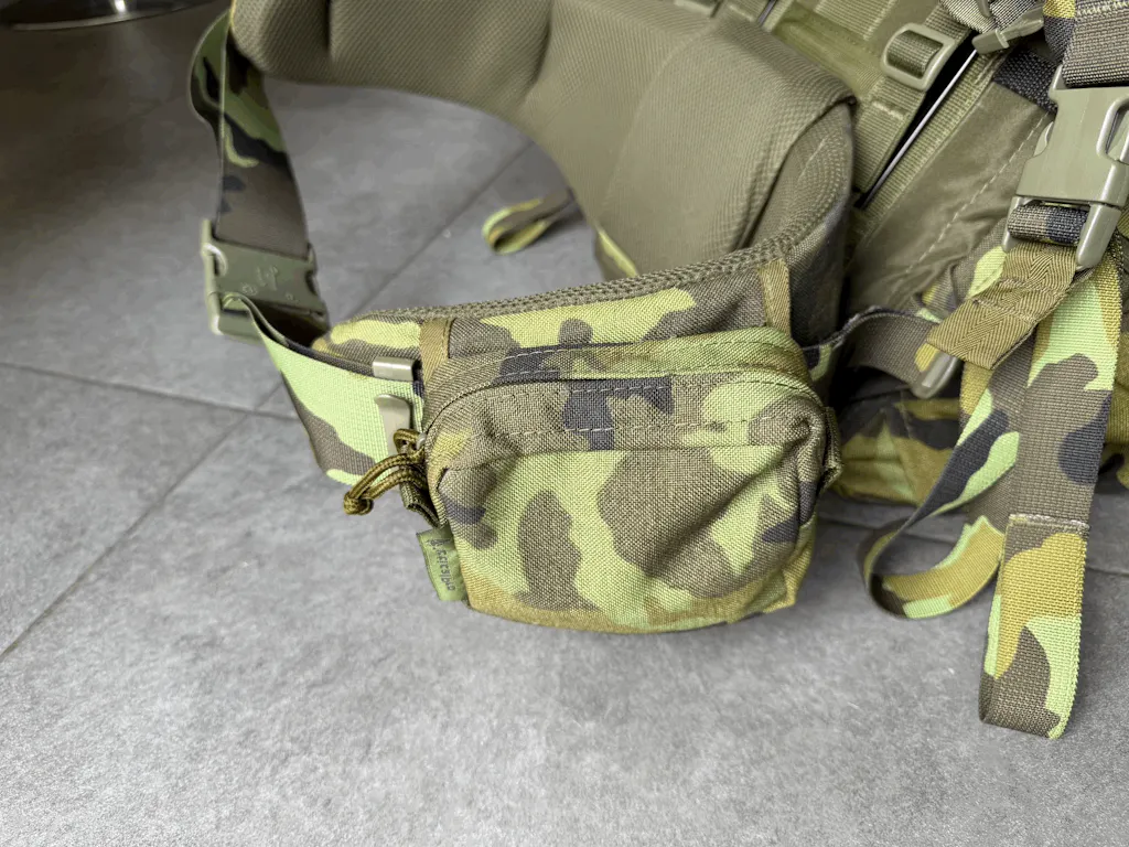 Kapsa se upevňuje pomocí popruhů, které jsou našity na zadní straně a jsou přizpůsobeny k upnutí na MOLLE vazbu.